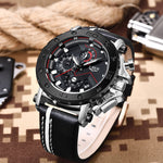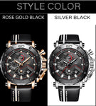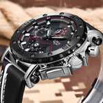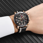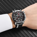 Luminous, waterproof, chronograph, calendar, large dial, leather strap, fashion, casual